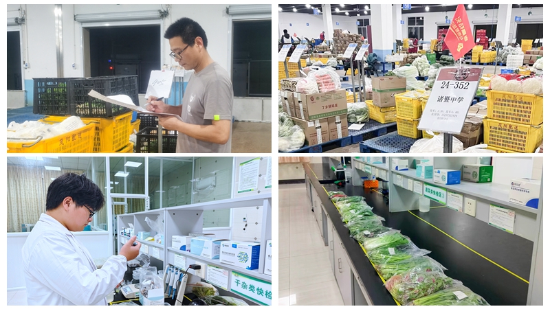 檢測(cè)室內(nèi)同樣忙碌,檢測(cè)人員緊張有序地工作著。高考期間,單日檢測(cè)品類達(dá)200余個(gè)?!皩?duì)采購(gòu)來(lái)的、票證齊全的食材,我們都會(huì)取樣檢測(cè)。只有通過(guò)檢測(cè)了我們才會(huì)進(jìn)行分揀配送?!辟|(zhì)量技術(shù)部負(fù)責(zé)人侯戰(zhàn)鋒表示,高考期間較平時(shí)加大了檢測(cè)頻次,各類檢測(cè)項(xiàng)目多達(dá)39項(xiàng),實(shí)現(xiàn)全品類、全批次檢測(cè)。期間,浙農(nóng)茂陽(yáng)的CNAS國(guó)家實(shí)驗(yàn)室還對(duì)各區(qū)域公司產(chǎn)品進(jìn)行了隨機(jī)復(fù)測(cè)抽檢。4天里,檢測(cè)團(tuán)隊(duì)及時(shí)發(fā)現(xiàn)并銷毀了兩批次農(nóng)殘超標(biāo)的千禧果、沃柑等果蔬,確保送出食材質(zhì)量安全。