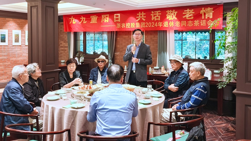 金秋送爽,丹桂飄香。10月10日,重陽佳節(jié)前夕,浙農(nóng)控股集團在杭州西子湖畔為退休老同志舉辦了茶話會活動,邀請老同志們共度佳節(jié)。控股集團黨委副書記、總經(jīng)理曹勇奇,黨委副書記吳小樟,黨委委員、副總經(jīng)理蔣銘偉,總經(jīng)理助理陳江等公司領(lǐng)導與近三十位退休老同志歡聚一堂、追憶往昔、共話發(fā)展。